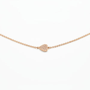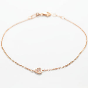 Elegant 14K rose gold heart anklet featuring a delicate 9-inch chain. This charming piece showcases a heart pendant adorned with 0.07 carats of diamonds, crafted from 1.09 grams of rose gold. Perfect for adding a touch of romantic sophistication to any look, whether worn alone or layered with other jewelry. A timeless accessory that combines luxury materials with graceful design.