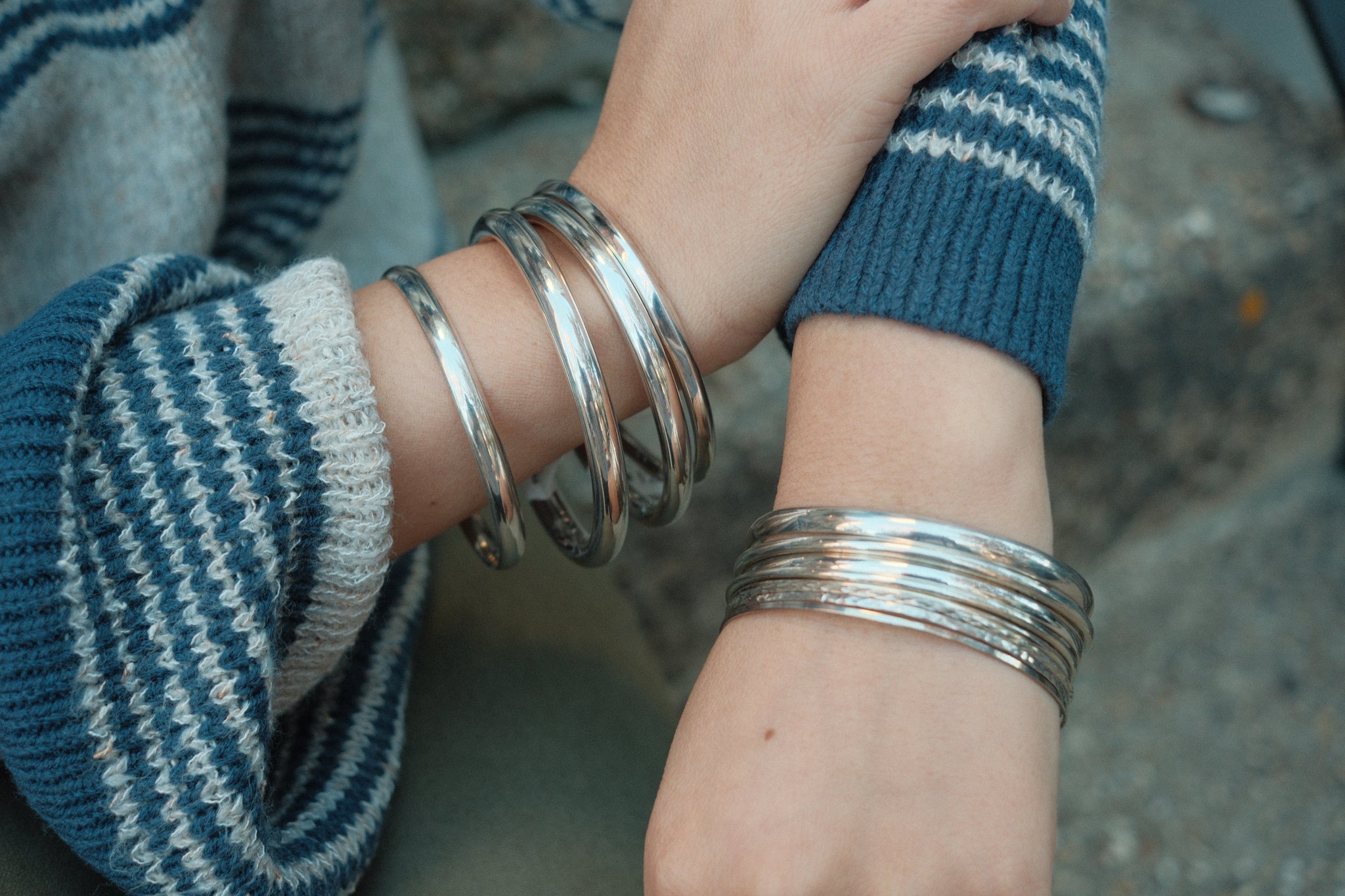 Elegant sterling silver bangle crafted with a sleek 4mm width. This timeless piece offers understated sophistication, perfect for everyday wear or layering with other bracelets. The polished finish catches light beautifully while maintaining a minimalist aesthetic that complements any style.