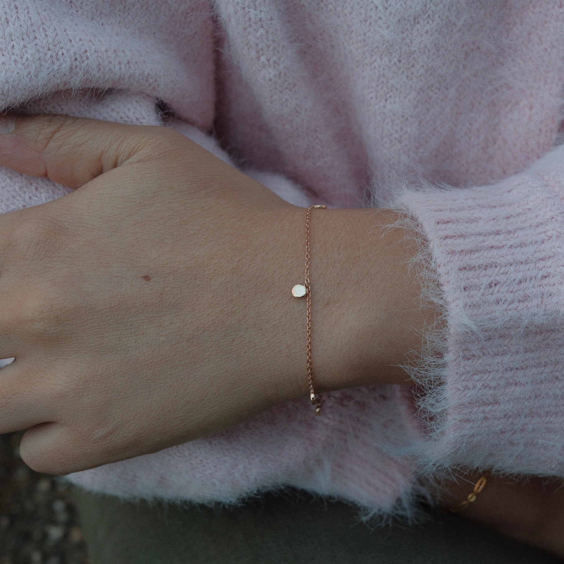 Crafted in your choice of sterling silver or rose gold vermeil, this elegant confetti bracelet measures 7 inches, offering a refined accessory that seamlessly complements any occasion.