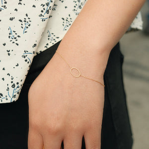 The mini oval is understated yet packs a graphic punch. Perfect for everyday wear, the mini oval measures ⅜” wide by ¼” tall and is suspended on our signature 14k cable chain. Handmade in recycled 14k gold with a satin finish, this bracelet measures 7” in length with a spring clasp. BR548