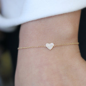 This elegant 14K gold bracelet features a pavé heart design adorned with 22 diamonds totaling 0.07 carats. Weighing 1.18 grams, it measures 7 inches in length, offering a refined touch of sparkle.