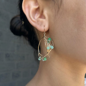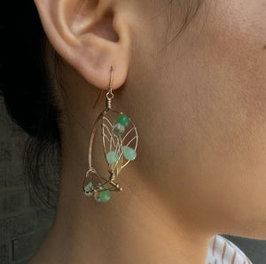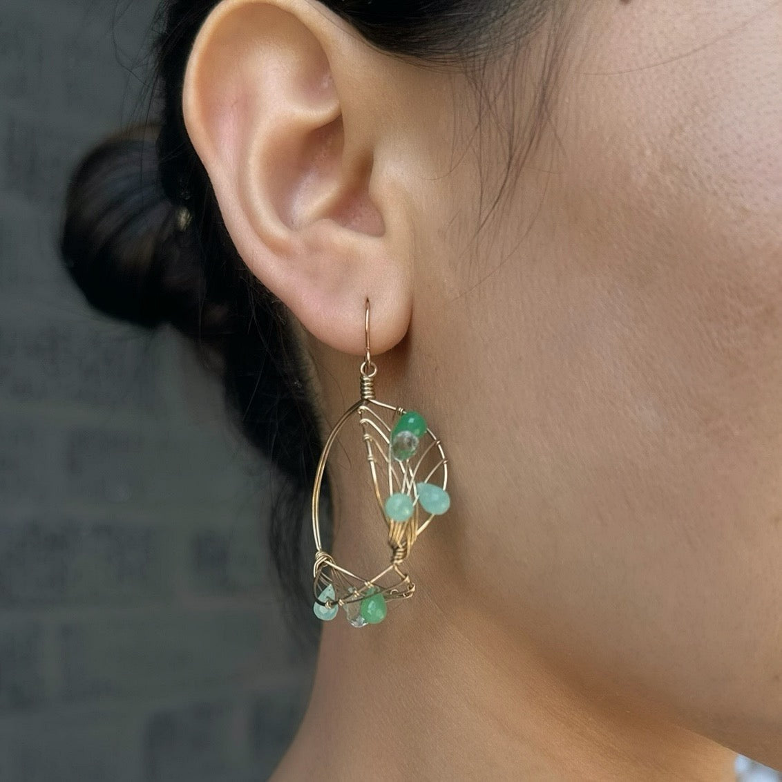Experience the beauty of luxury and nature with these elegant hand wired earrings. Made with 14K gold filled and featuring the stunning gemstone of Chrysoprase, hangs about 2" long - the perfect length to add a touch of sophistication to any outfit.