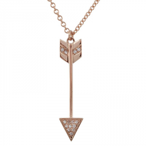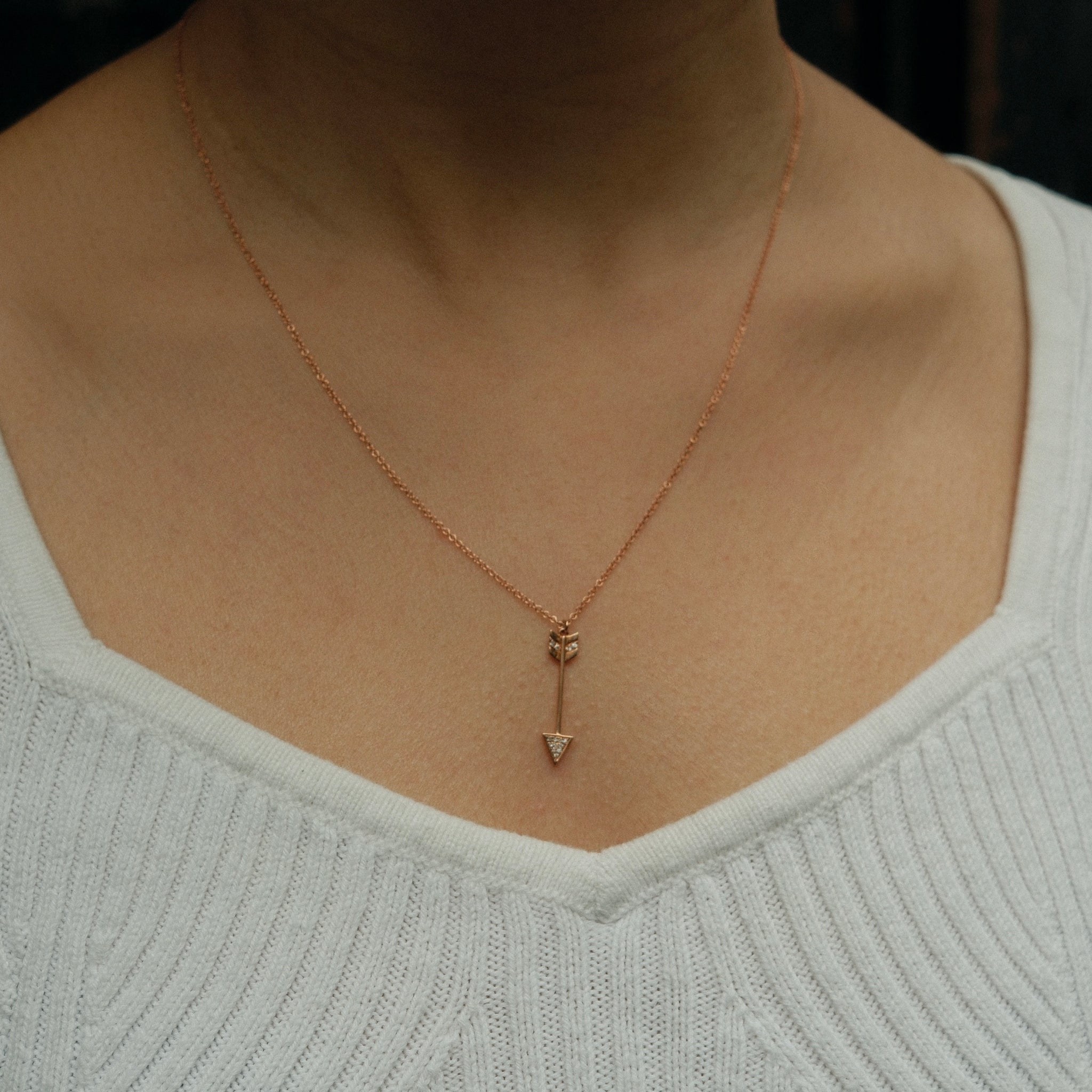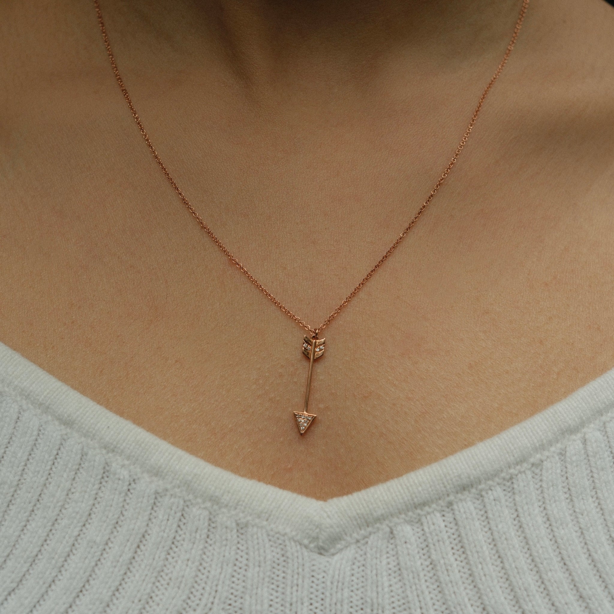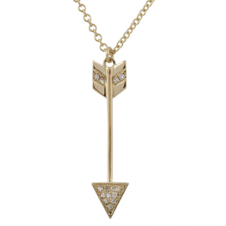 Crafted from 14K solid gold, this arrow necklace features 14 brilliant diamonds totaling 0.03 carats, weighing 1.97 grams. The chain is adjustable, ranging from 16 to 18 inches for a customizable fit.