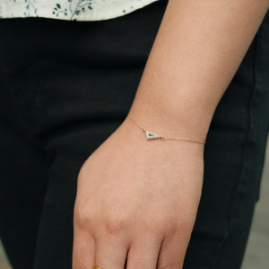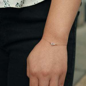 Crafted from 14K gold, this 6.5" piece features an elegant cutout triangle design accented with a sparkling diamond.