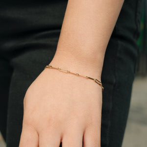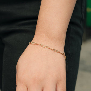 This 7-inch bracelet features a refined paper clip design crafted in 14K gold.