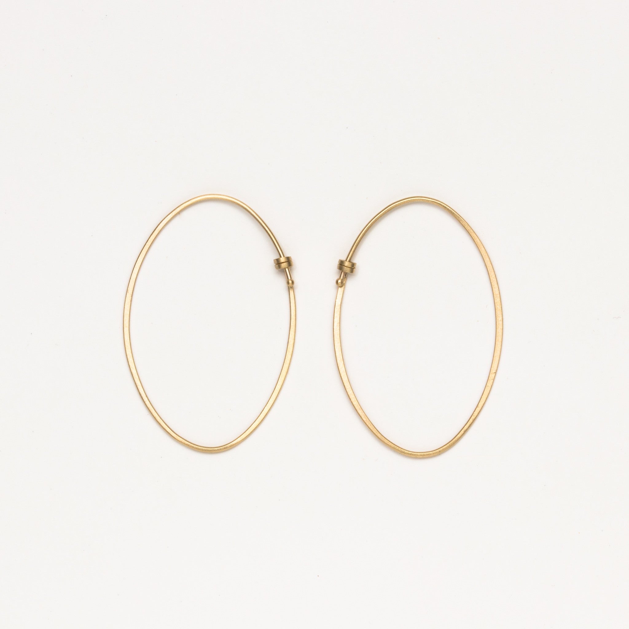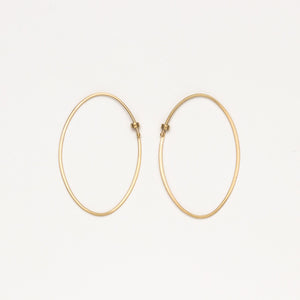 Lightweight and simple, they look great on just about everyone. Handmade in 14k gold, they are crafted from a single piece of wire that is hand tapered, shaped and hammered. These small oval hoops measure just over 1 1/4" in length.