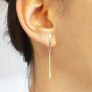 Featherweight and fabulous, the fringe earrings are crafted from wire that is hand tapered, shaped and hammered. Hung from a single hinge, the smooth, flat planes of each fringe sparkle in the light. Handmade in recycled 14k gold with a satin finish, they measure 1 5/8" length with gold posts and backings. ER622