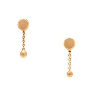 These earrings feature a 14k gold ball dangling from delicate 14k gold cable chain. The short round ball and chain earrings are captivating in their subtle simplicity, wear them every day or for a fun night out. Handmade in 14k gold, each earring is 1cm long, and the top circle measures approximately 3.4mm in diameter. ER913