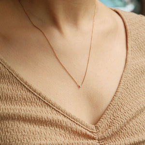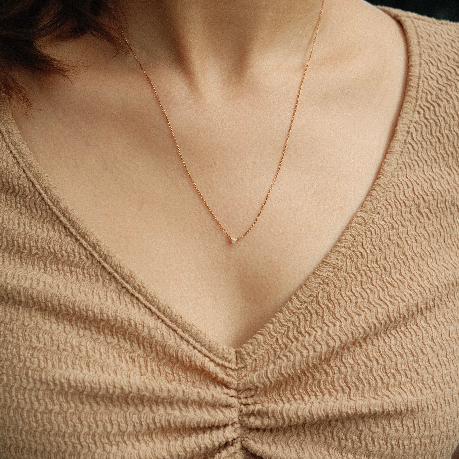 Delicately crafted 14K gold necklace featuring a single 0.03ct Diamond set with tiny prongs, adjustable from 16" to 18" in length.