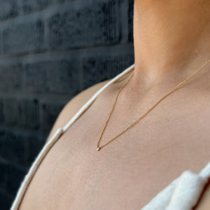 Handmade in conflict free14k gold on a 17” chain with a spring clasp, the tiny circle is approximately 2mm in diameter.
