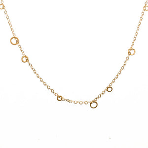 The nebula line features delicate clusters of open circles, linked together in almost cloud-like formations. Handmade in 14k yellow gold with a soft satin finish, the Nebula Strand necklace is 17" long as shown on model.