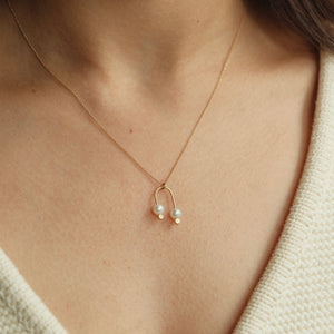 A handcrafted 17-inch necklace featuring 14K gold and a delicate pearl accent.