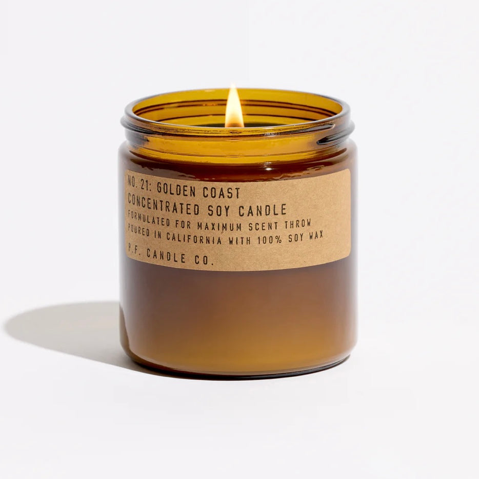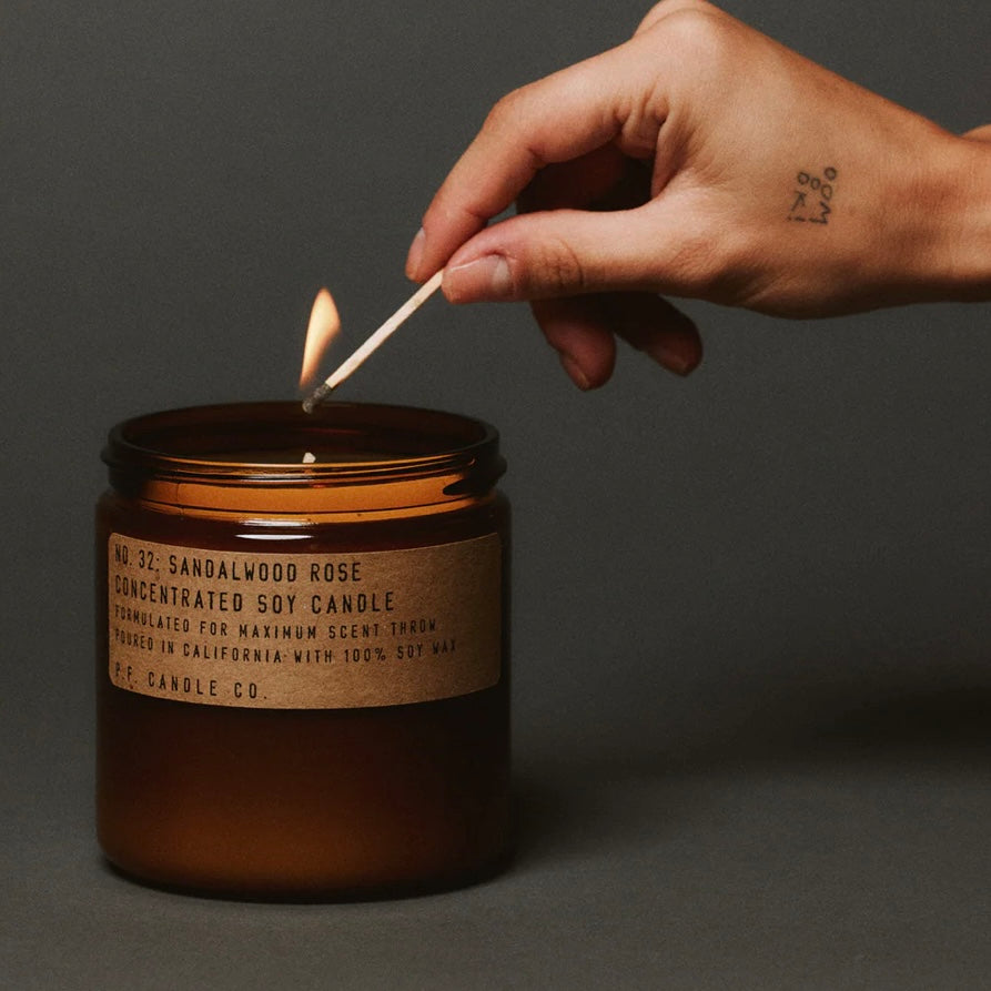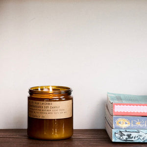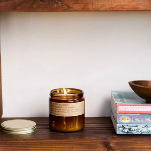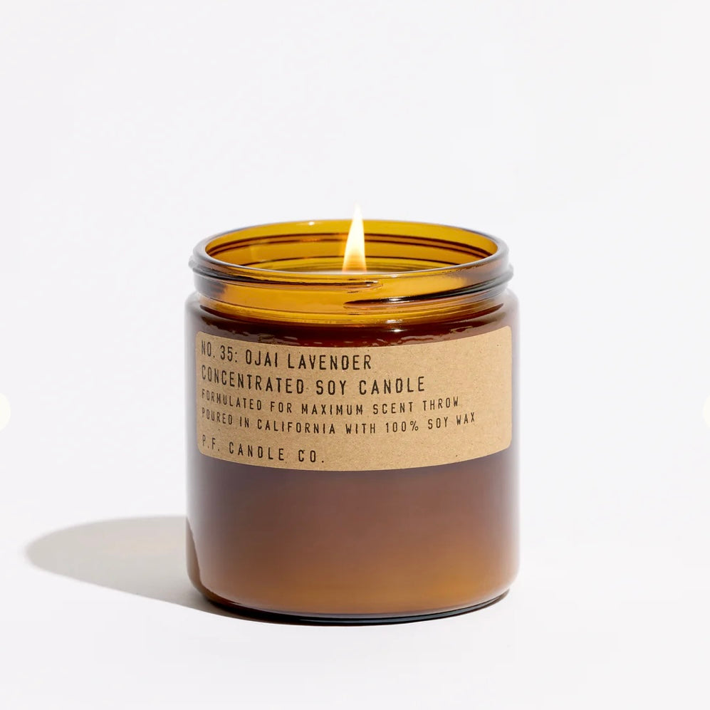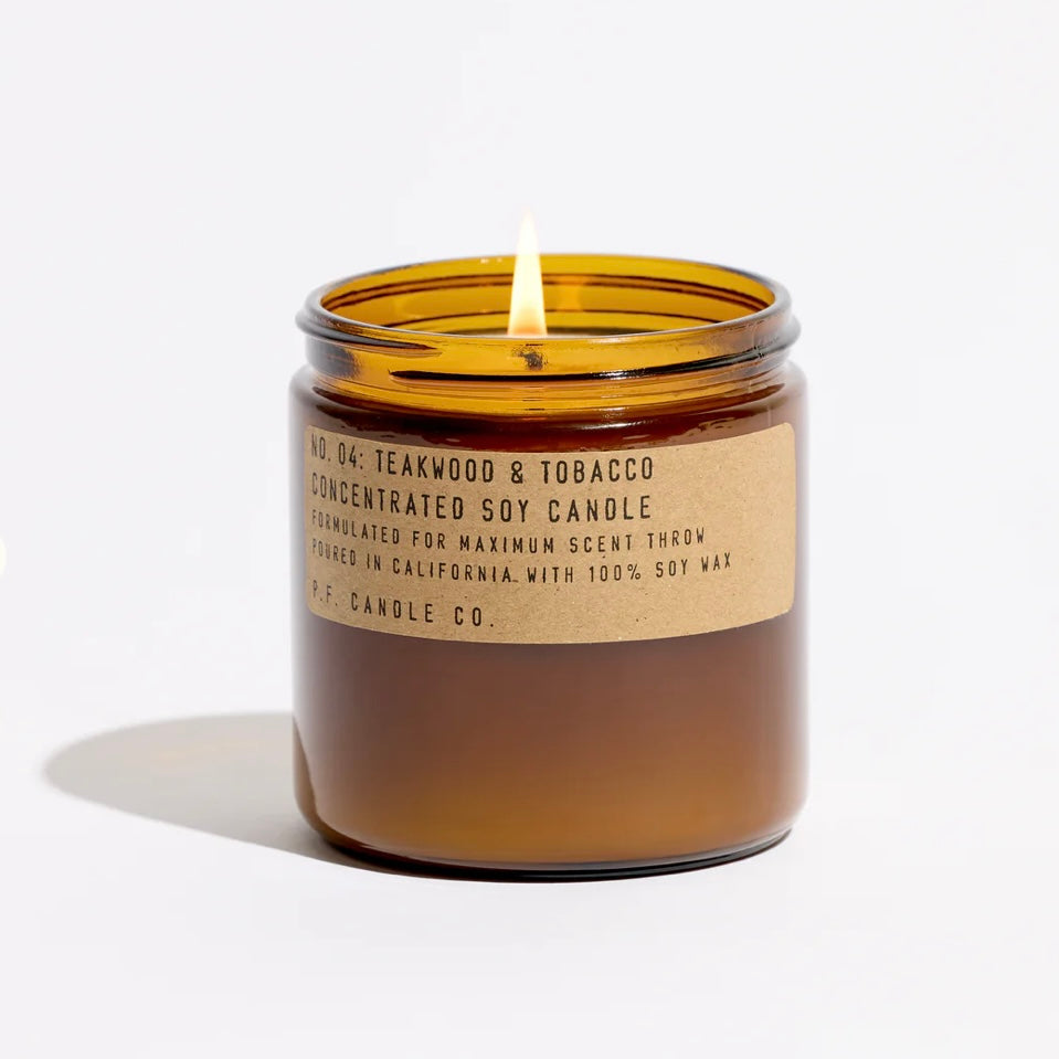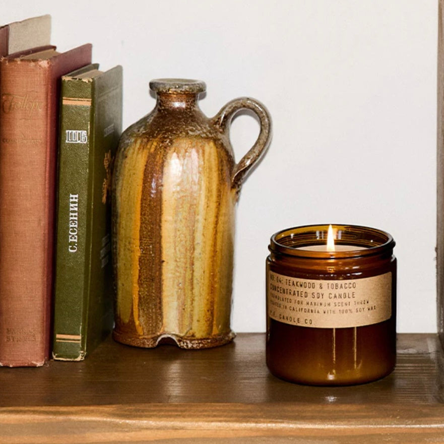 These 12.5oz Candles are hand-poured into apothecary inspired amber jars with their signature kraft label and a brass lid.