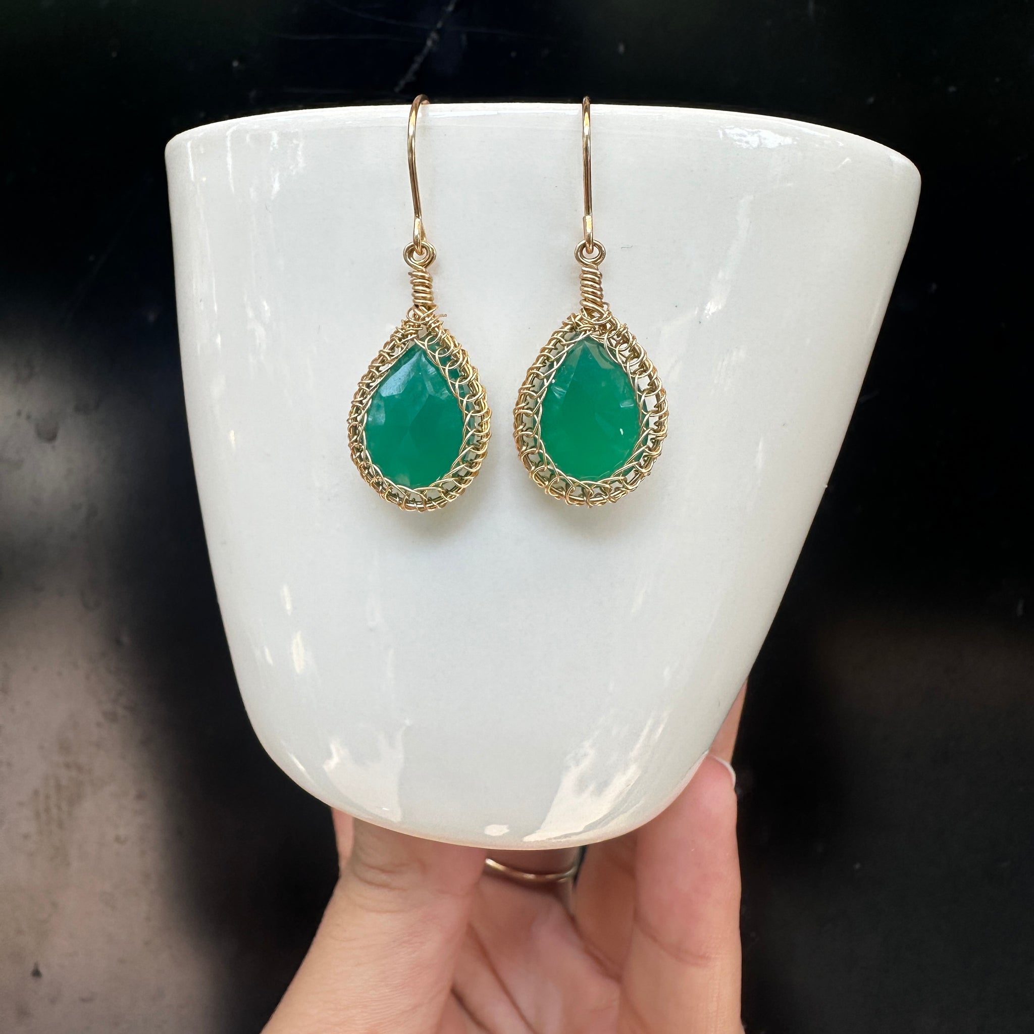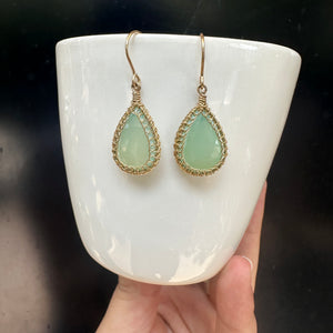These earrings are meticulously handcrafted and handwired using 14k gold-filled material, adorned with exquisite gemstones, offering a distinctive and refined elegance.
