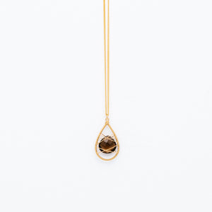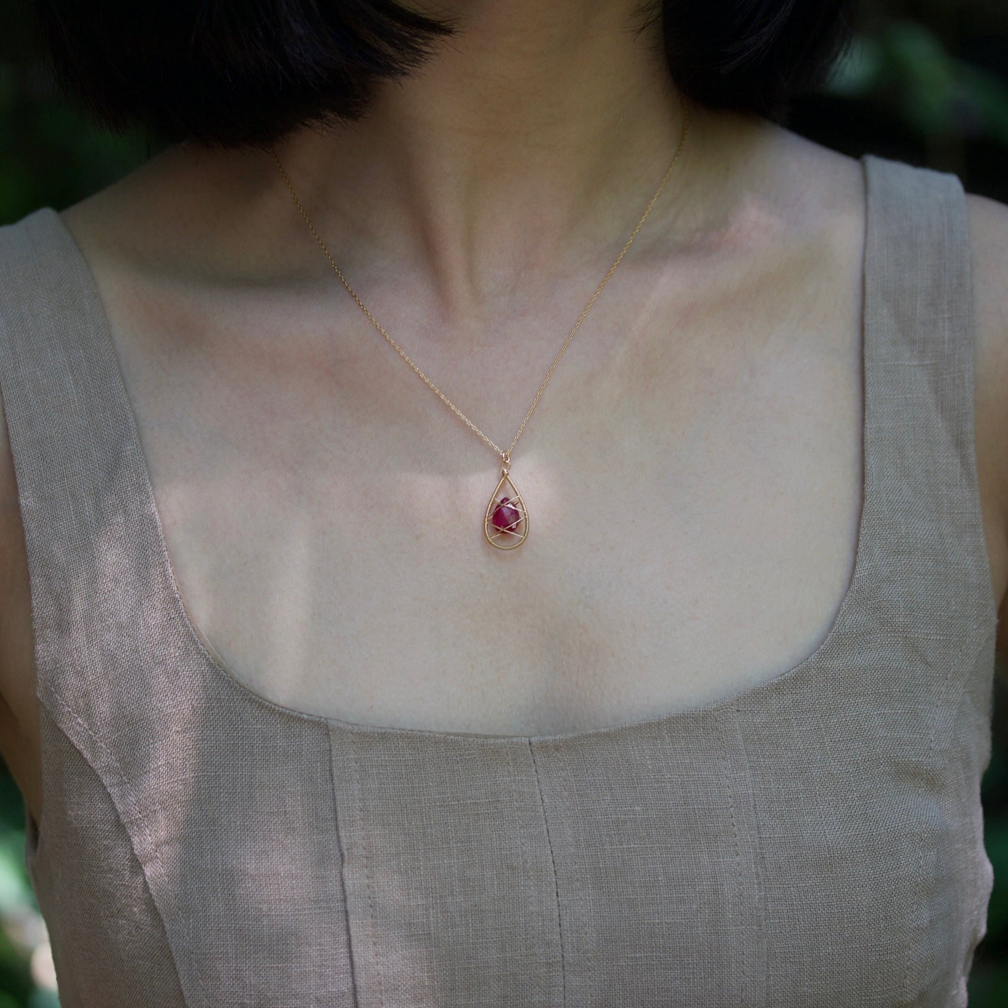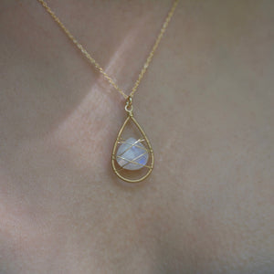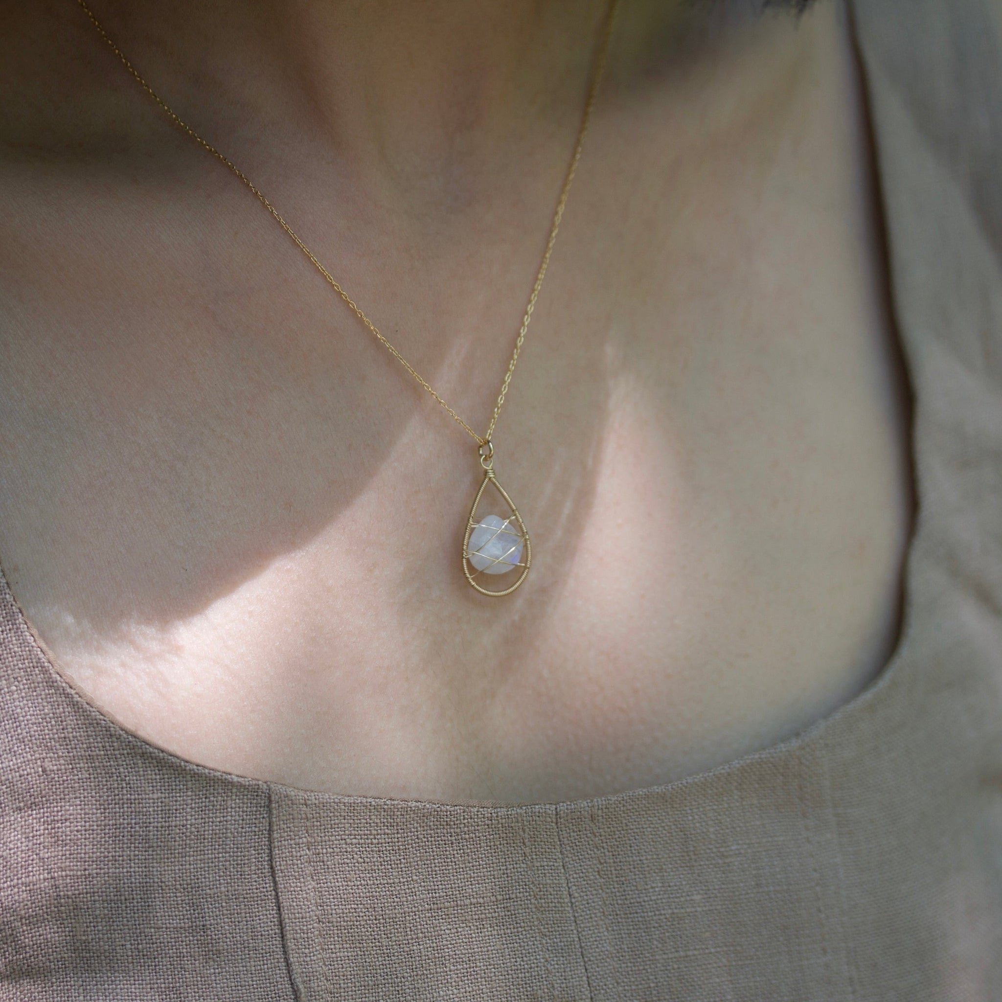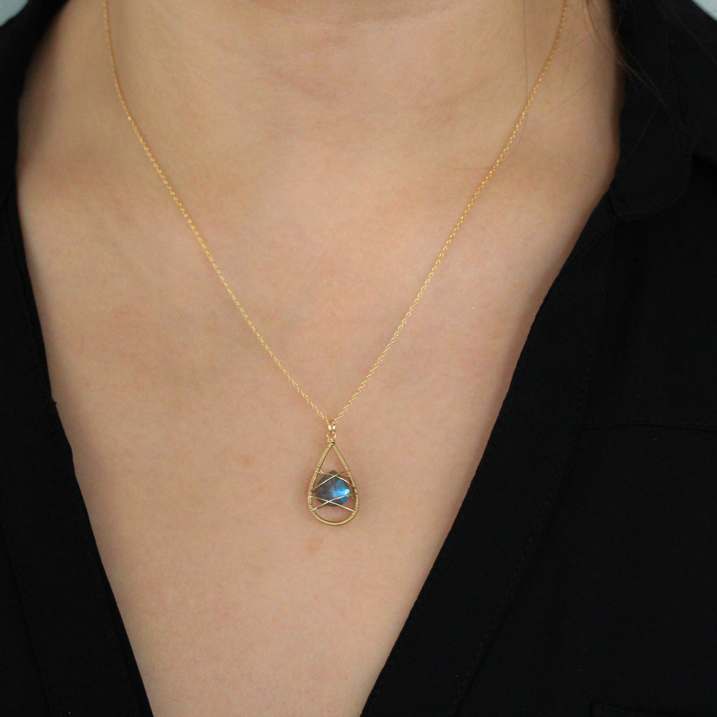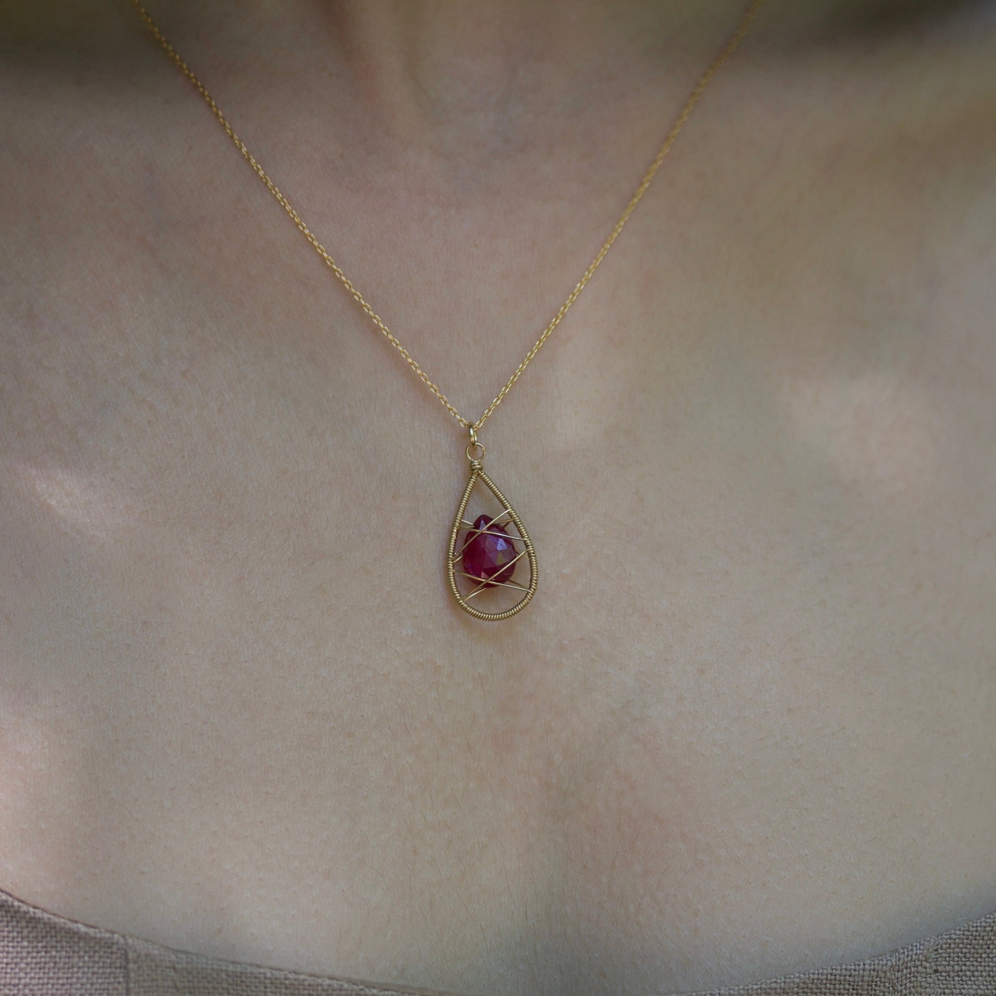 Facetted Ruby, Moonstone, Smoky Quartz, Chalcedony, Green Onyx, Labradorite is encased in 14k yellow gold gold-filled wires.