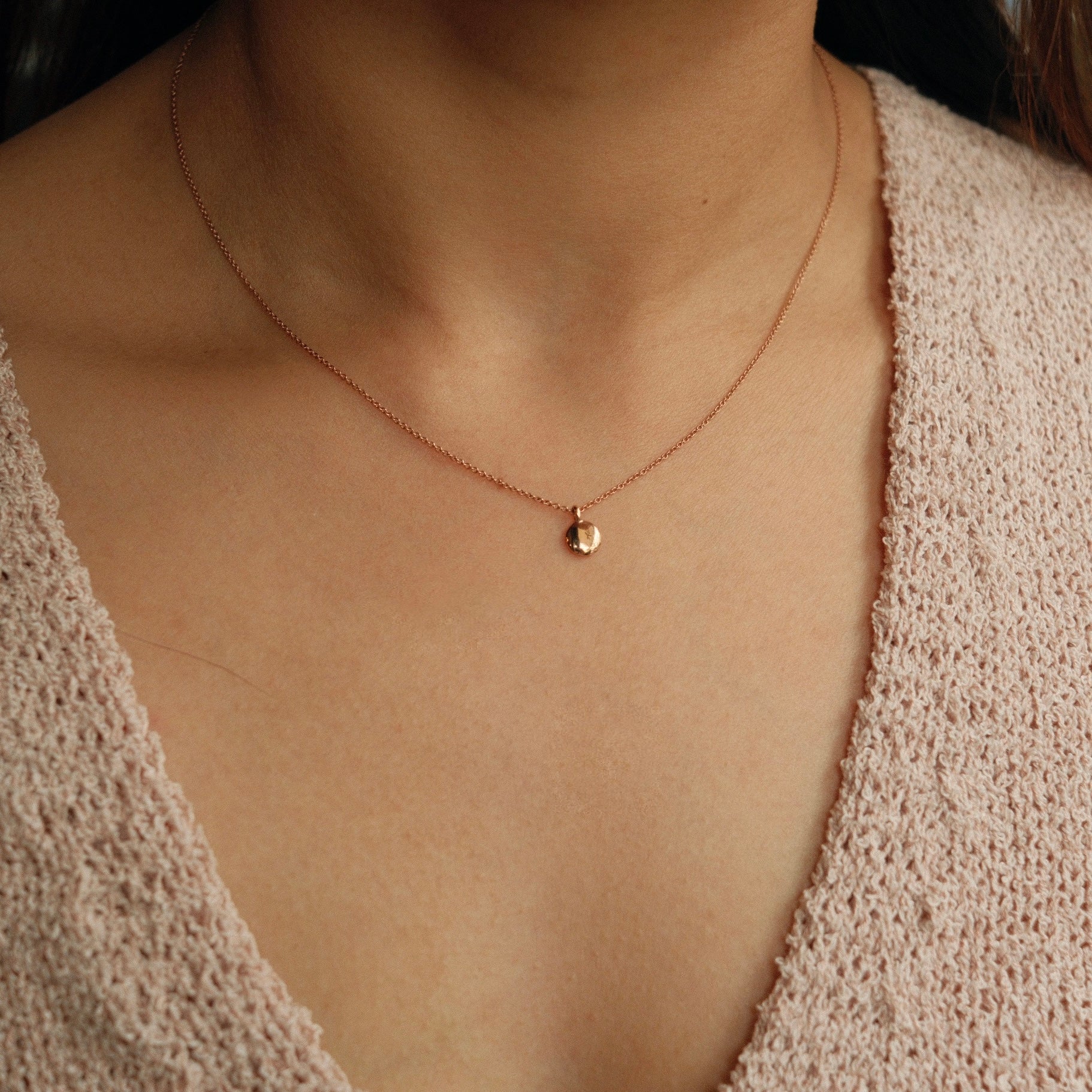 Indulge in the sophistication of our 14K Rose gold disc necklace, measuring 18 inches in length. Elevate your style with this elegant and exclusive piece.