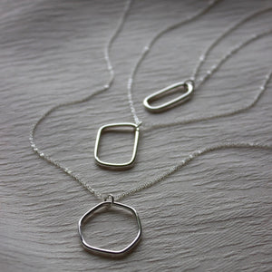 Hand formed and soldered pendants, available in 14K Gold Fill and Sterling Silver. Please allow for subtle variation in shapes as these styles are made by hand.