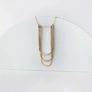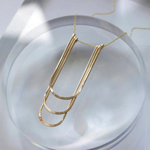 Three formed and forged tiers, lightweight and easy to wear, with your choice of chain. Gold fill / Sterling Silver lobster clasp and wiring.